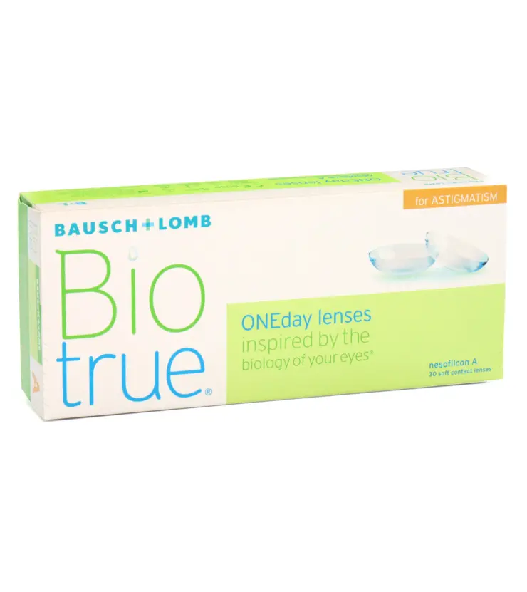 Biotrue ONEday For Astigmatism — торичні одноденні контактні лінзи для корекції астигматизму від Bausch + Lomb. Матеріал Nesofilcon A (гіпергель) підтримує вологовміст 78%, а кисневопроникність 42 Dk/t допомагає зберігати комфорт протягом дня.