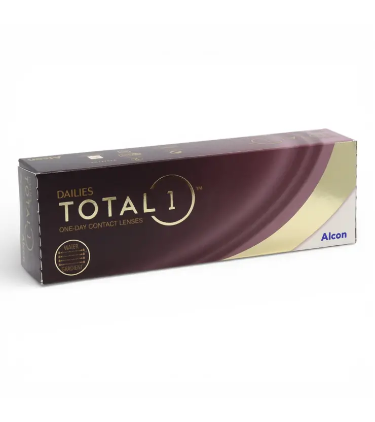 Dailies Total 1 — це преміальні одноденні контактні лінзи від компанії Alcon, створені для максимального комфорту та здоров’я очей. Лінзи виготовлені з використанням інноваційної технології Water Gradient, завдяки якій поверхня лінзи майже повністю складається з води (до ~100%). Це забезпечує виняткову м’якість і природні відчуття при морганні навіть для дуже чутливих очей.