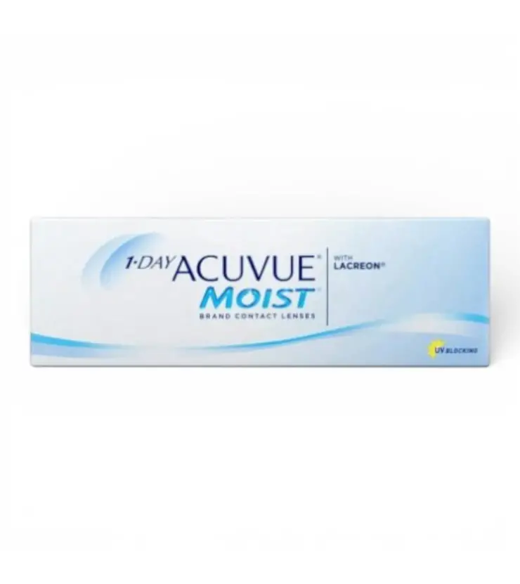 1-Day ACUVUE Moist (30 шт) від Johnson & Johnson — одноденні м’які контактні лінзи для корекції короткозорості та далекозорості (- / +). Модель розрахована на денний режим носіння (зазвичай до 12 годин) і підходить тим, хто хоче максимальну гігієнічність: кожного дня нова пара, без контейнерів та розчинів.
