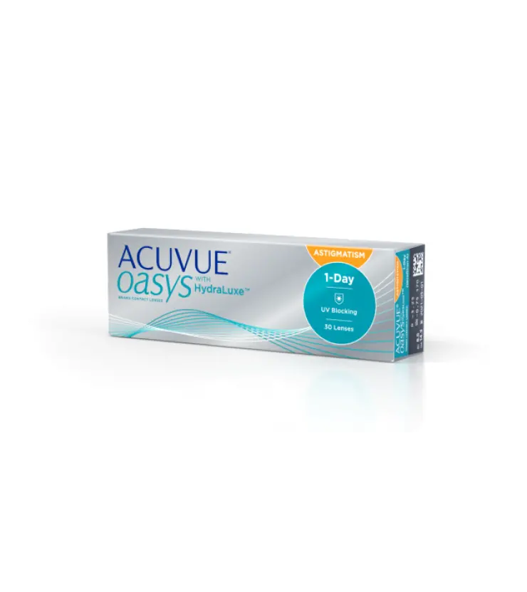 ACUVUE OASYS 1-Day with HydraLuxe for Astigmatism (30 шт) — одноденні силікон-гідрогелеві торичні контактні лінзи Johnson & Johnson для корекції астигматизму. Формат щоденної заміни зручний і максимально гігієнічний: нова пара щодня, без контейнерів та розчинів.