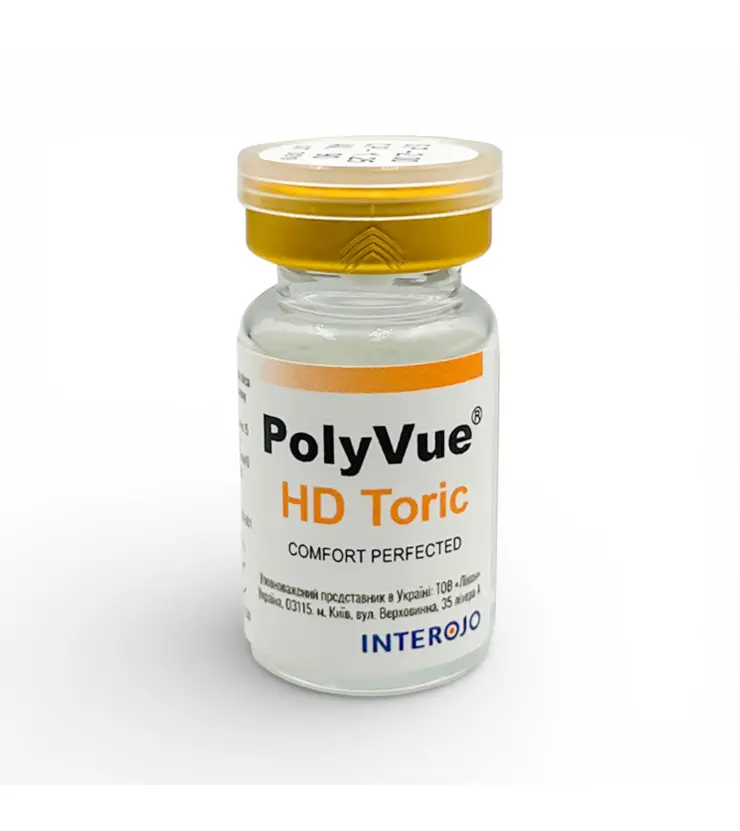 PolyVue HD Toric Likon (1 шт) — торична контактна лінза тримісячного використання для корекції астигматизму. Модель створена на базі лінзи PolyVue HD та має широкий діапазон циліндрів, що дає змогу підібрати корекцію більшій кількості пацієнтів.