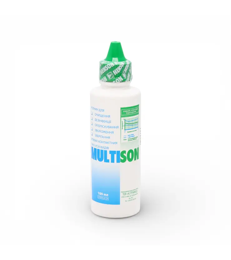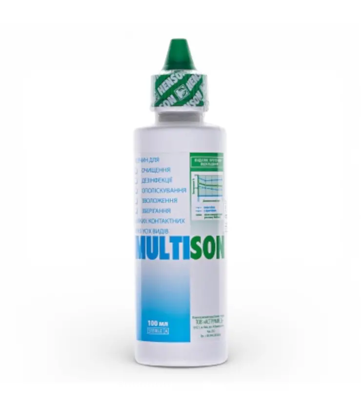Henson Multison — універсальний багатоцільовий розчин латвійського бренду Henson для щоденного догляду за всіма видами м’яких контактних лінз. Призначений для ополіскування, очищення, дезінфекції та зберігання лінз у контейнері.
